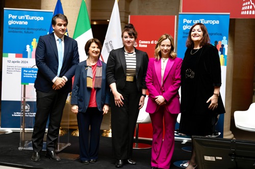 Si è tenuto venerdì 12 aprile 2024 l’evento promosso dalla Ministra per la famiglia, la natalità e le pari opportunità, On. Eugenia Roccella, dal titolo “Per un’Europa giovane. Transizione demografica, ambiente, futuro” presso la Sala del Tempio di Vibia Sabina e Adriano a Roma.